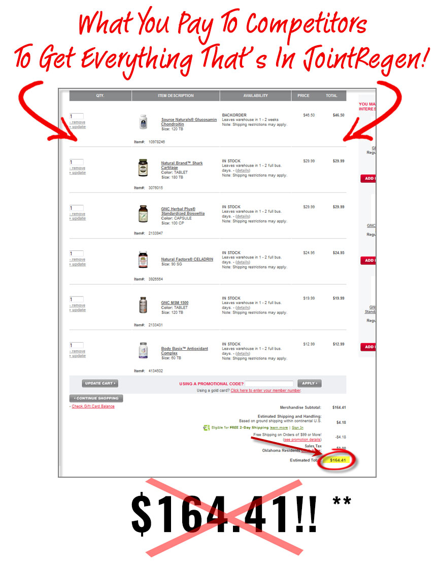 **Like Joint Regen, the products shown have 120 capsules (or less) for comparison purposes. Prices are current as of the time of the search. Not all of the products were an exact one for one match, but those shown do feature the ingredient**